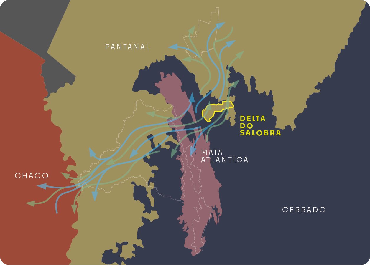 O Delta do Salobra é um nodo ecológico prioritário, situado no centro de um mosaico de Unidades de Conservação e de uma Terra Indígena.